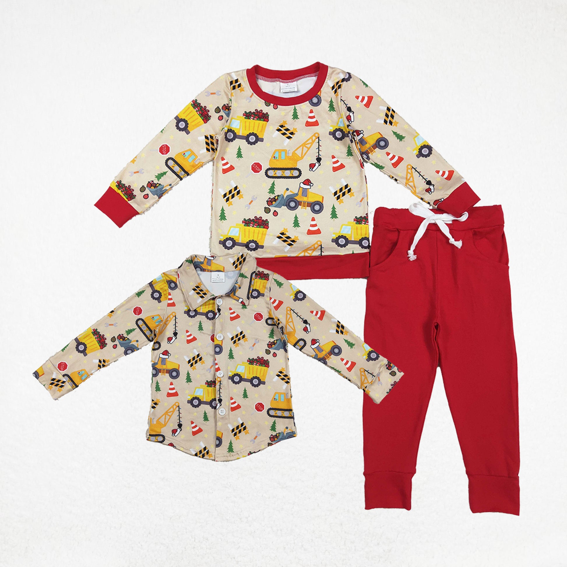 Baby Boy Long Sleeves Trucks Christmas Sibling Buttons Shirt Set Clothes RTS