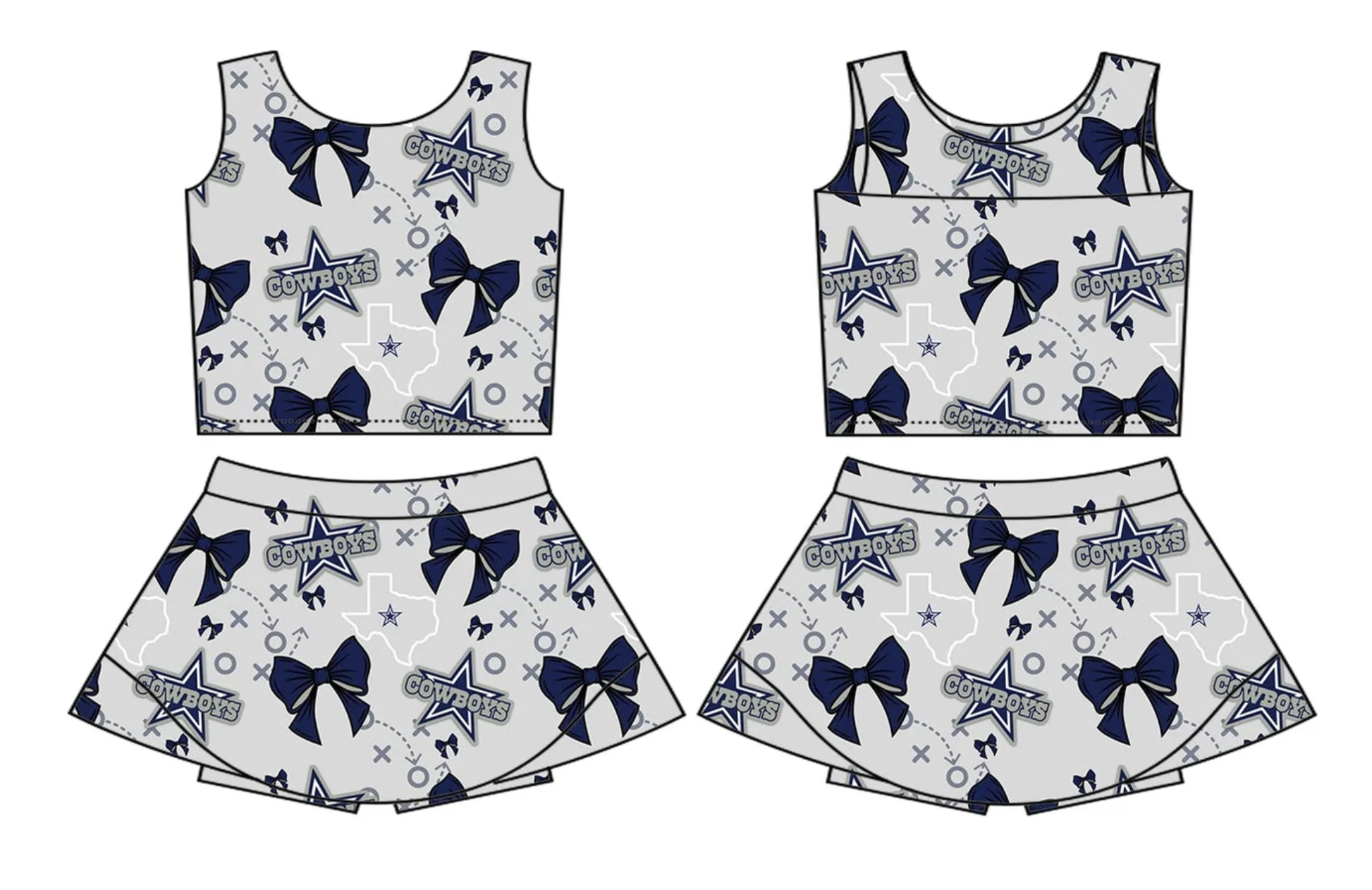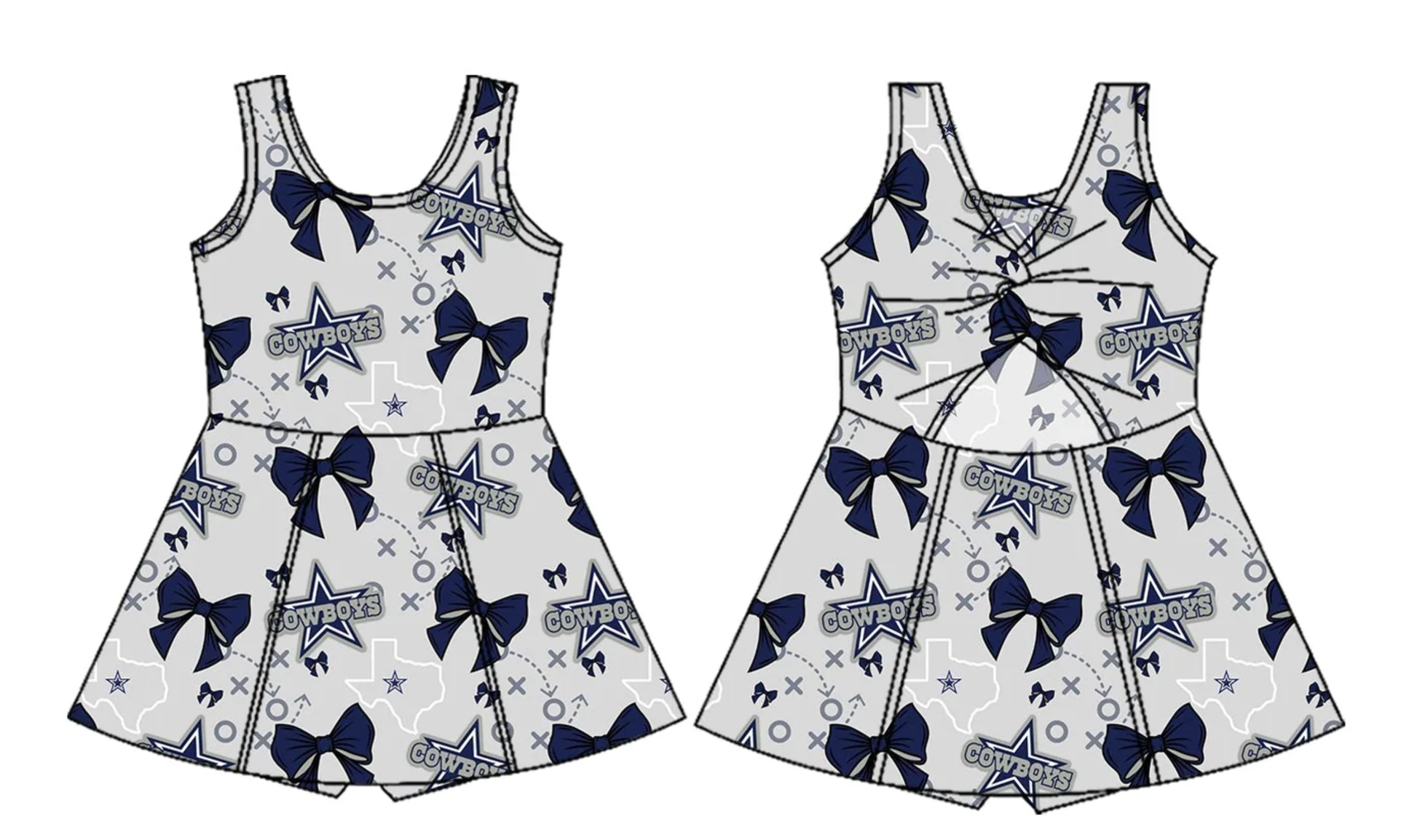 Baby Girl Sleeveless Cowboys Bows Sibling Team Dress Set ( Moq 5 Each Style ) 2.19
