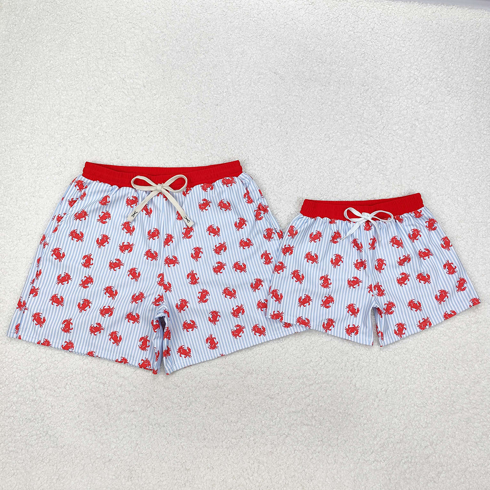Daddy and Me Baby Boy Adult Summer Crab Stripes Trunks Swimsuit Swimwear