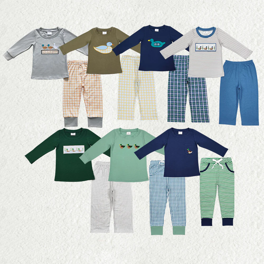 Duck Embroidery Top Pants Boys Fall Clothes Set Brothers Wear