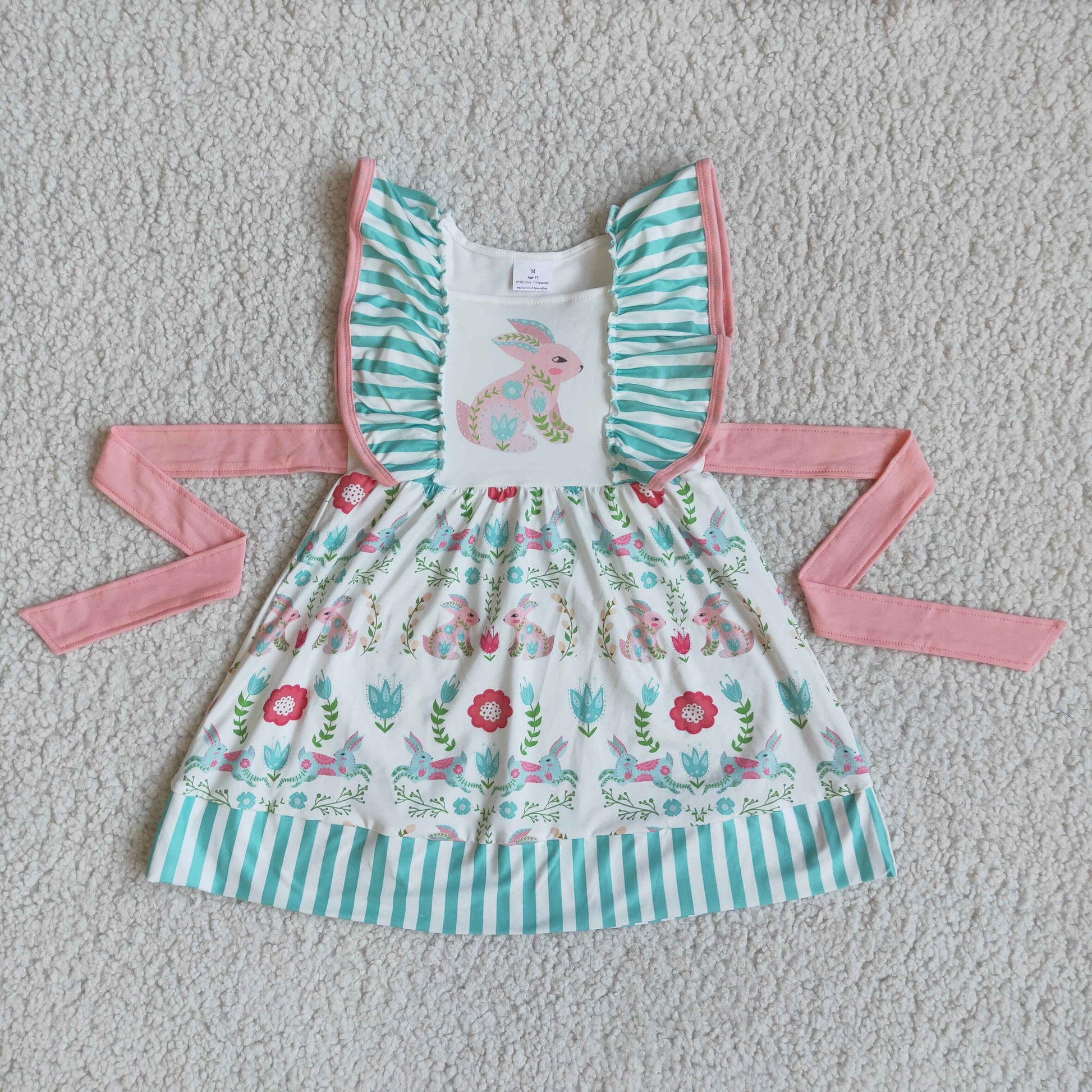 Easter Baby Girl Rabbit Bunny Flower Stripe Ruffle Dress