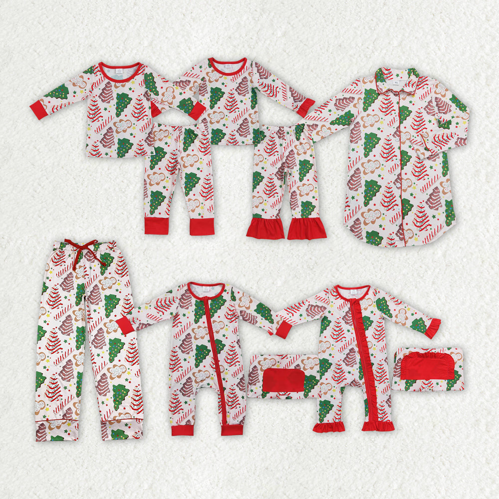 Mommy Daddy Boy Girl Family Christmas Tree Cake Bamboo Sibling Romper Pajamas Set