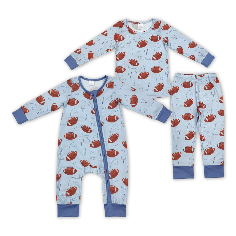 Baby Boy Toddler Football Sibling Brother Romper Pajamas Bamboo Clothes Set