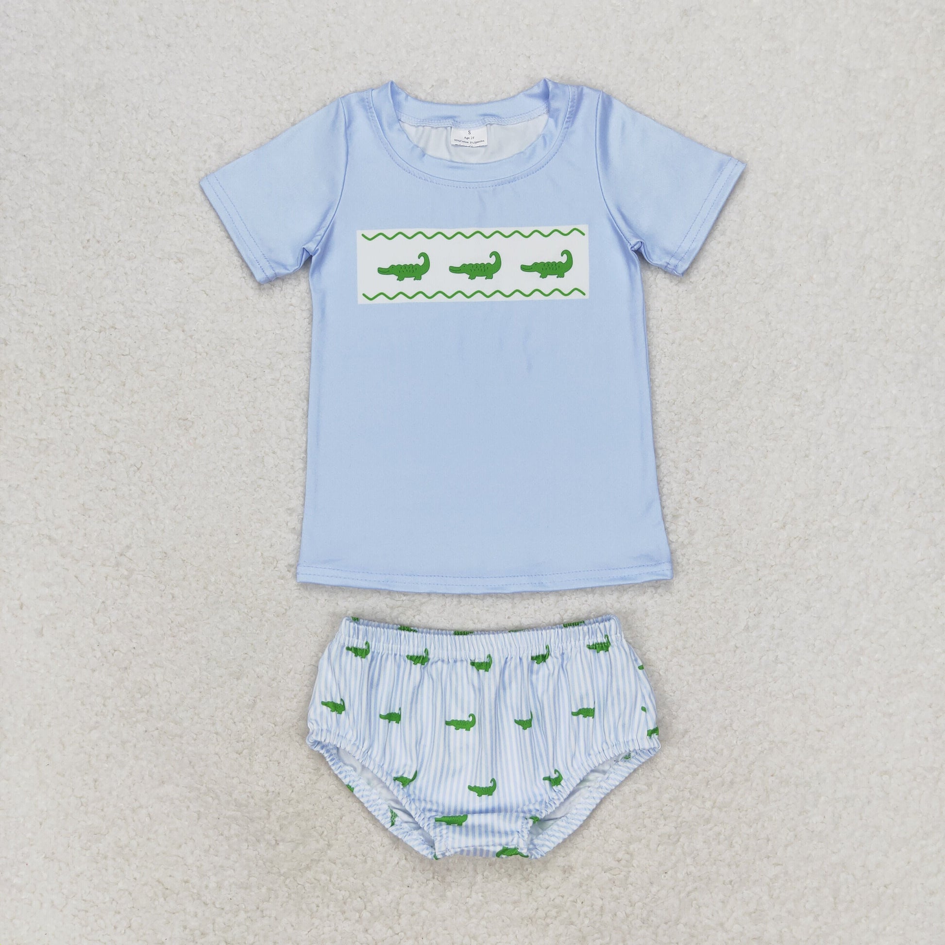 Baby Boy Short Sleeves Crocodile Bummie Blue Set