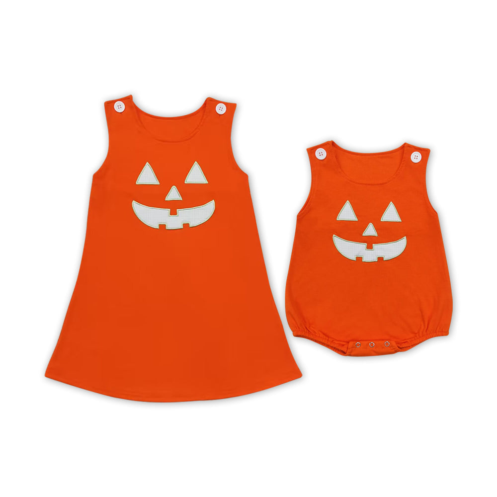 Baby Girl Halloween Embroidery Sibling Orange Dress Romper