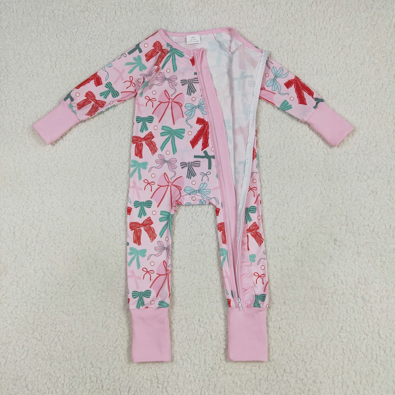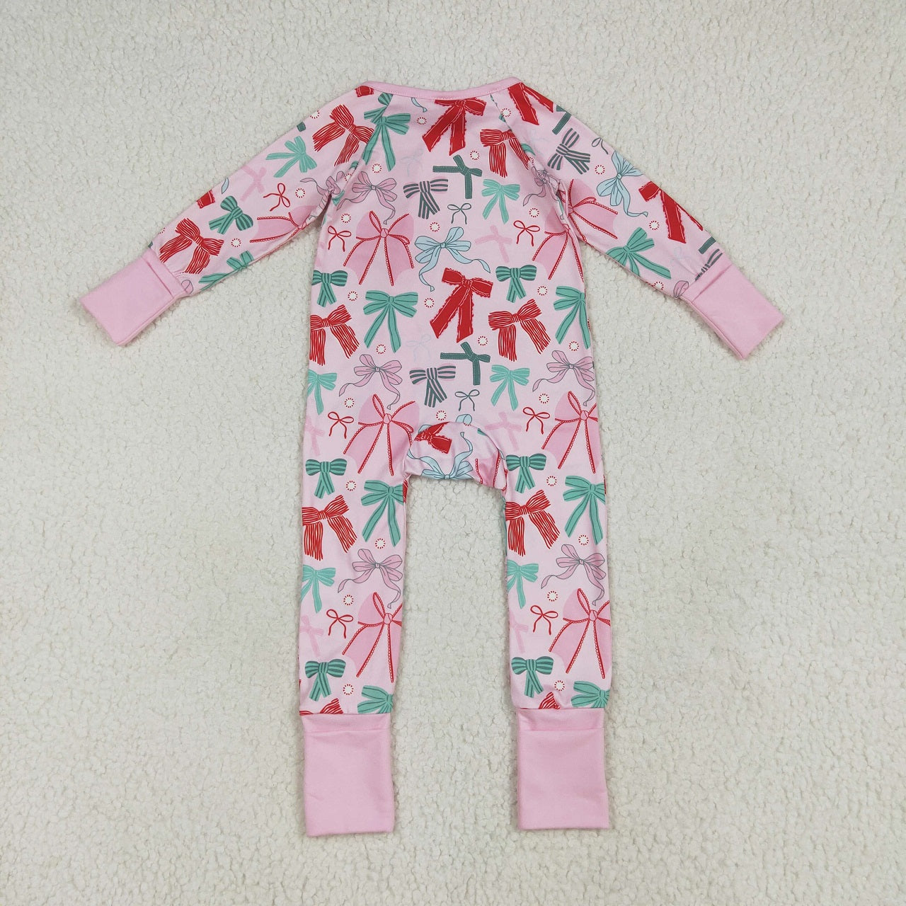 Girls Kids Adult Woman Long Sleeves Christmas Red Green Bows Sibling Family Romper Pajamas Pants Set RTS