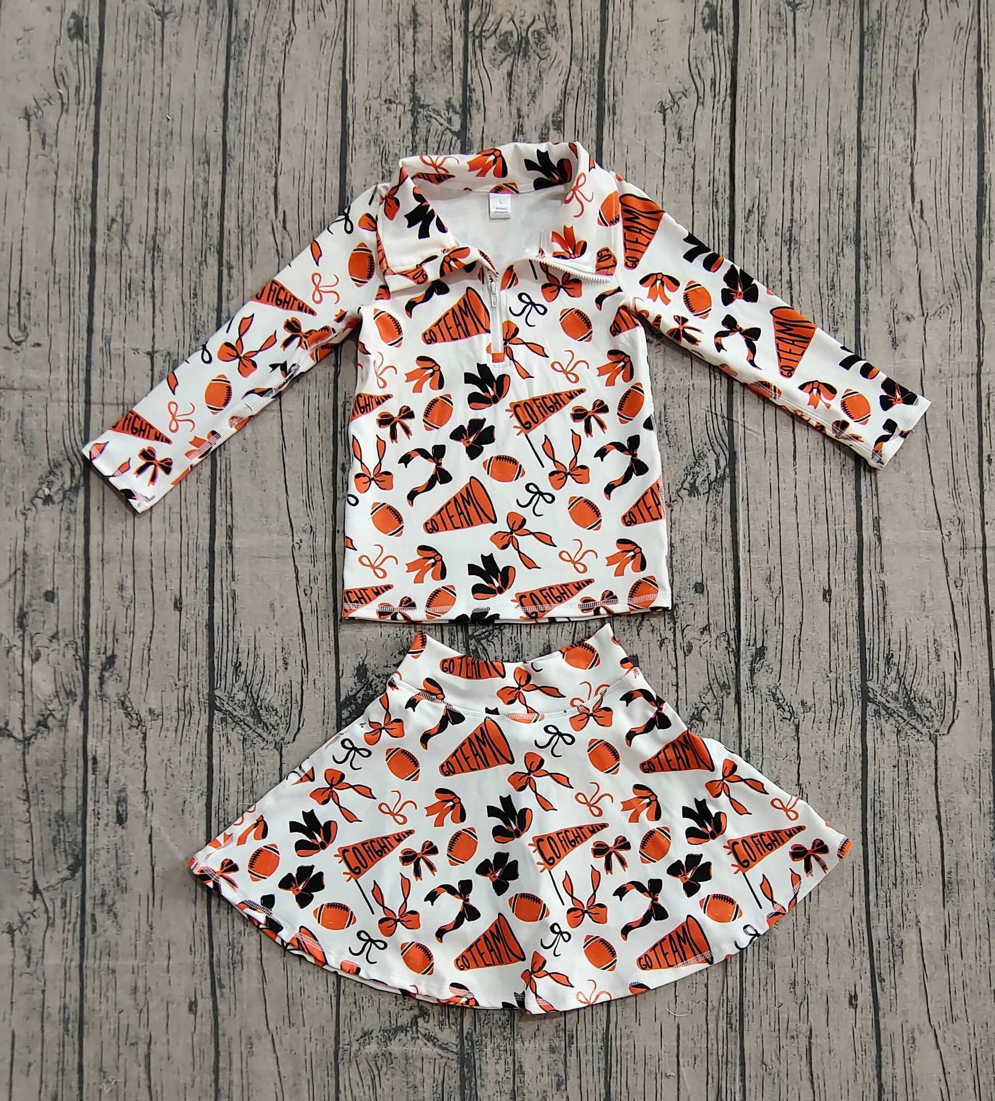Girls Kids Bows Orange Football Zipper Shirt Yoga Active Skorts Team Clothes Set RTS