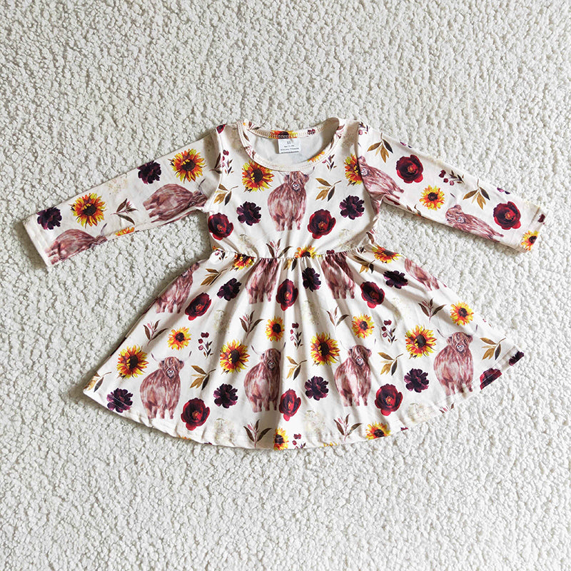 GLD0118 Baby Girl Western Cow Flower Fall Twirl Dress