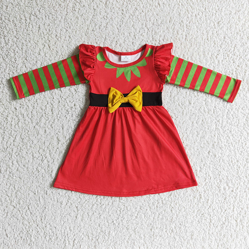GLD0144 Baby Girl Christmas Red Long Sleeve Dress