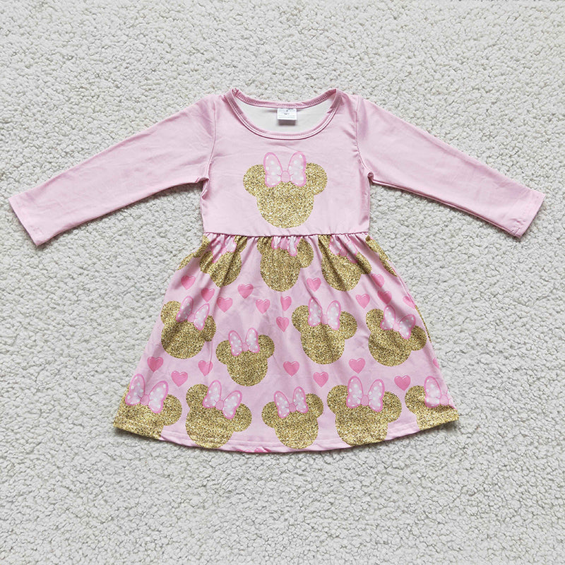 GLD0156 Baby Girl Cartoon Valentine's Pink Heart Dress