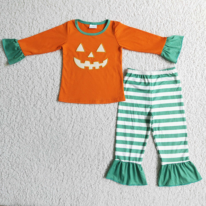 GLP0020 Baby Girls Embroidery Halloween Pumpkin Pajamas