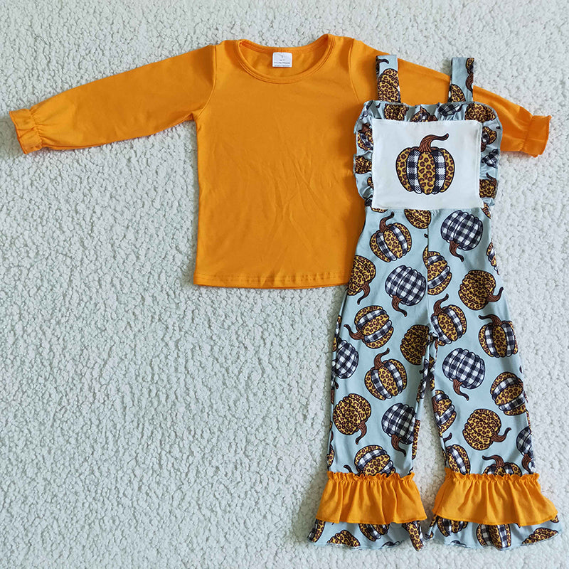 GLP0114 Baby Girl Kids Thanksgiving Pumpkin Overall Pants Outfit