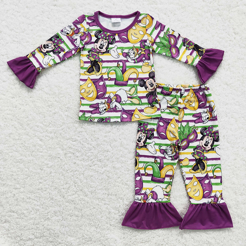 GLP0344 Baby Girl Mardi Gras Cartoon Pajamas Outfit