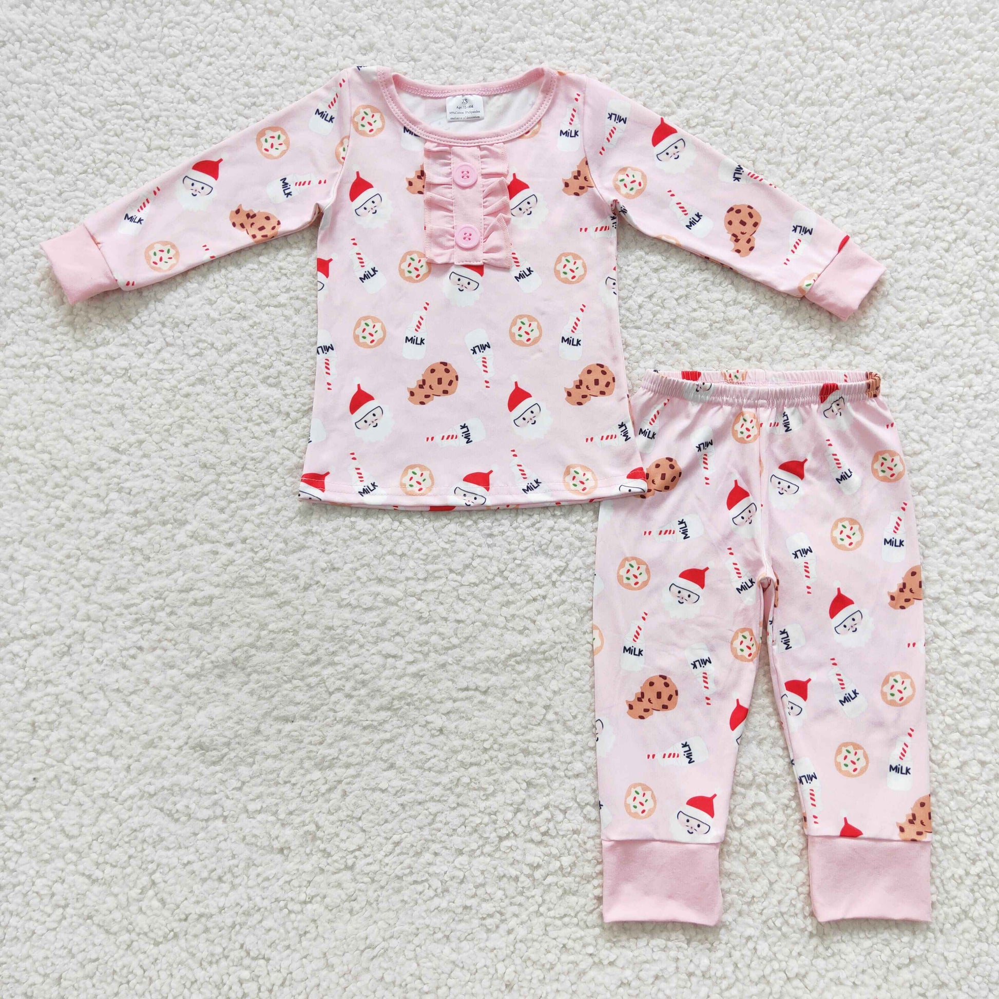 GLP0592 Baby Girl Christmas Santa Long Sleeves Cake Milk Pants Pink Outfit Pajamas