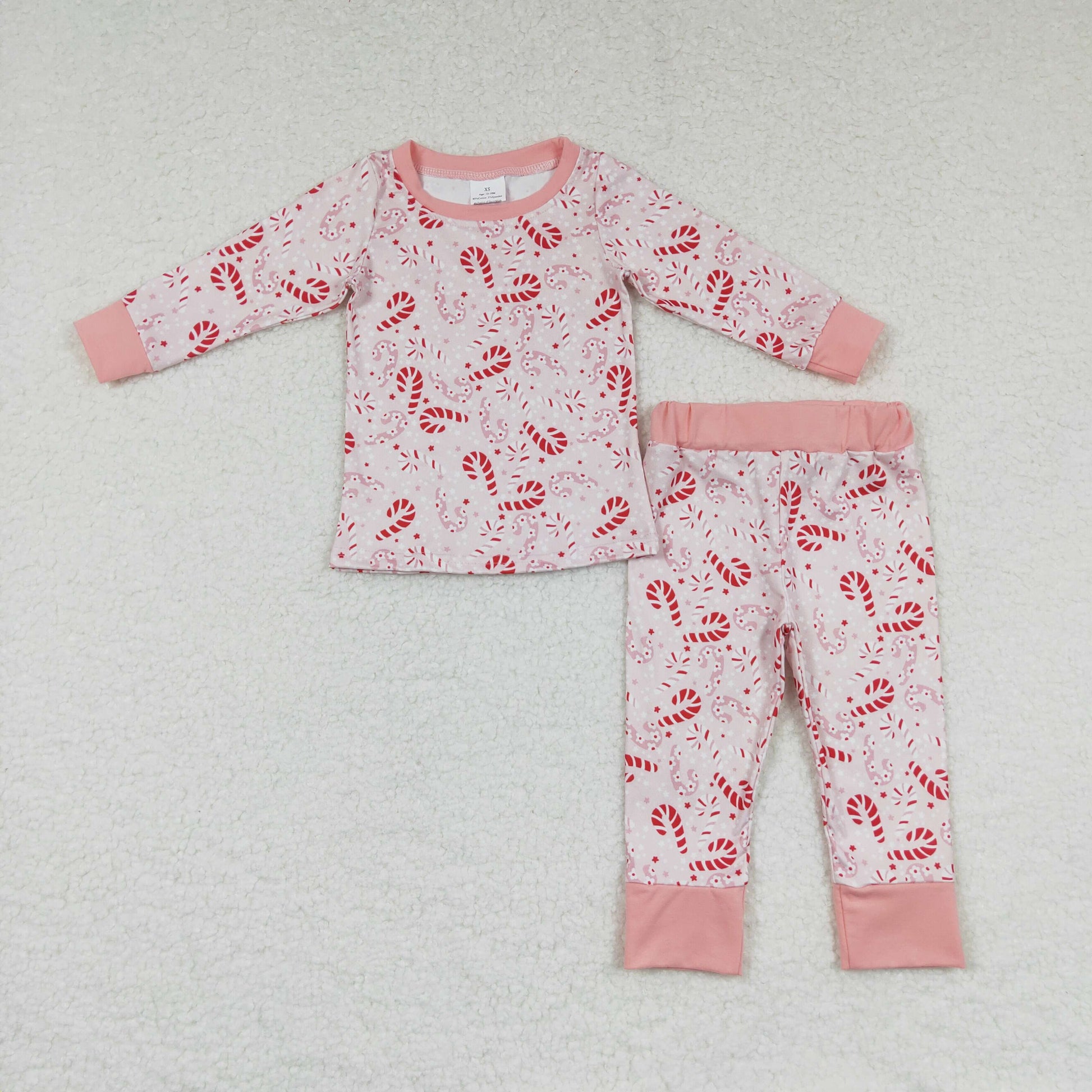GLP0738 Baby Girl Pink Long Sleeves Floral Candy Pants Christmas Outfit Pajamas