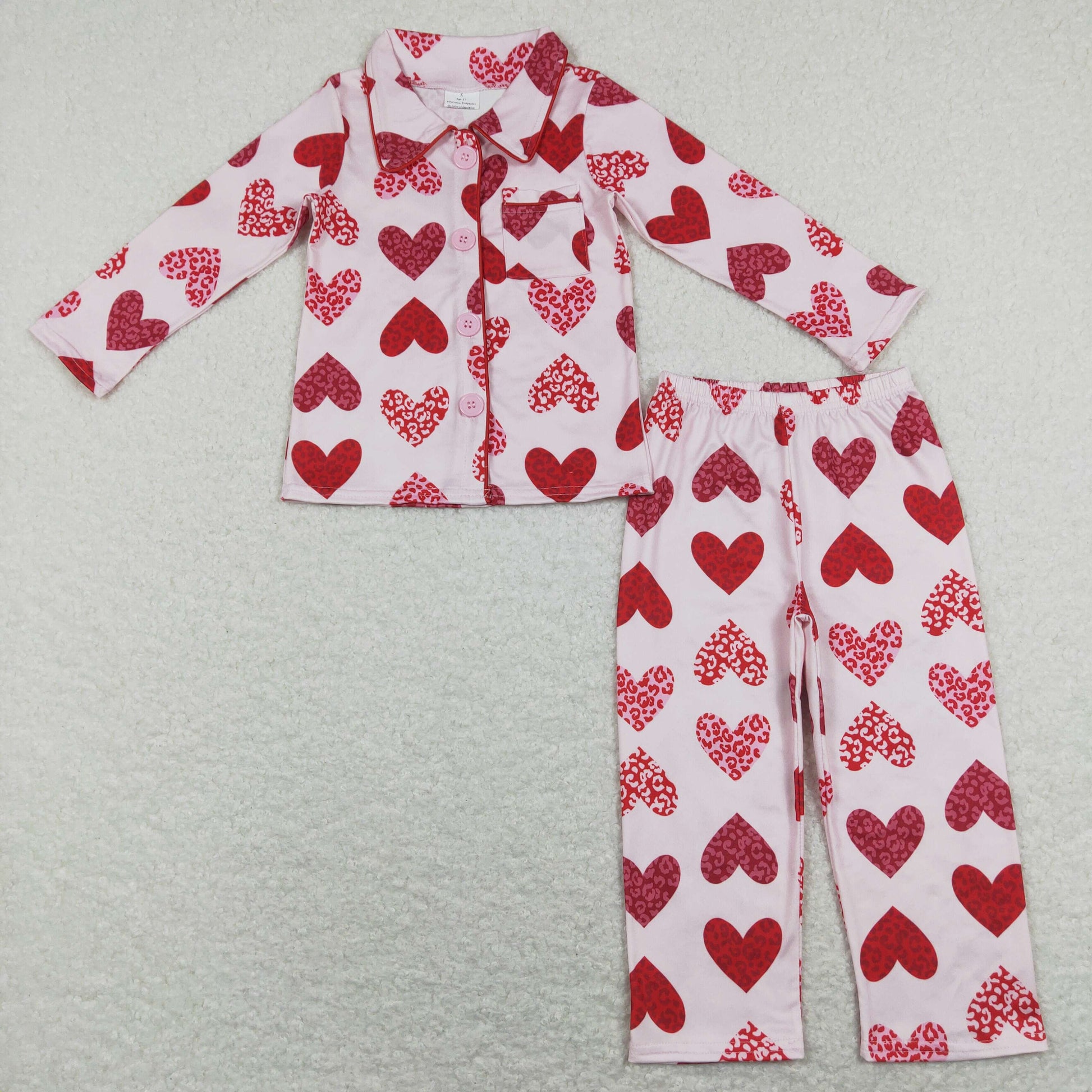 GLP1136 Baby Girl Long Sleeves Button Up Valentine's Hearts Cardigan Pants Outfit Pajamas