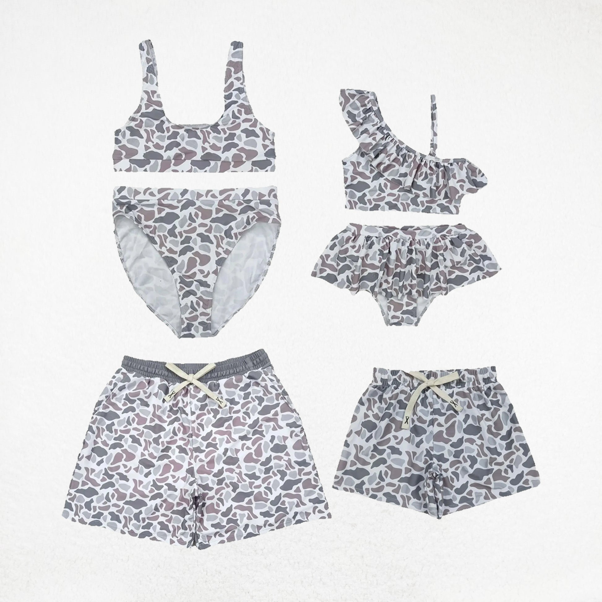 Baby Boy Girl Adult Grey Camo Sibling Family Trunks Swimsuit