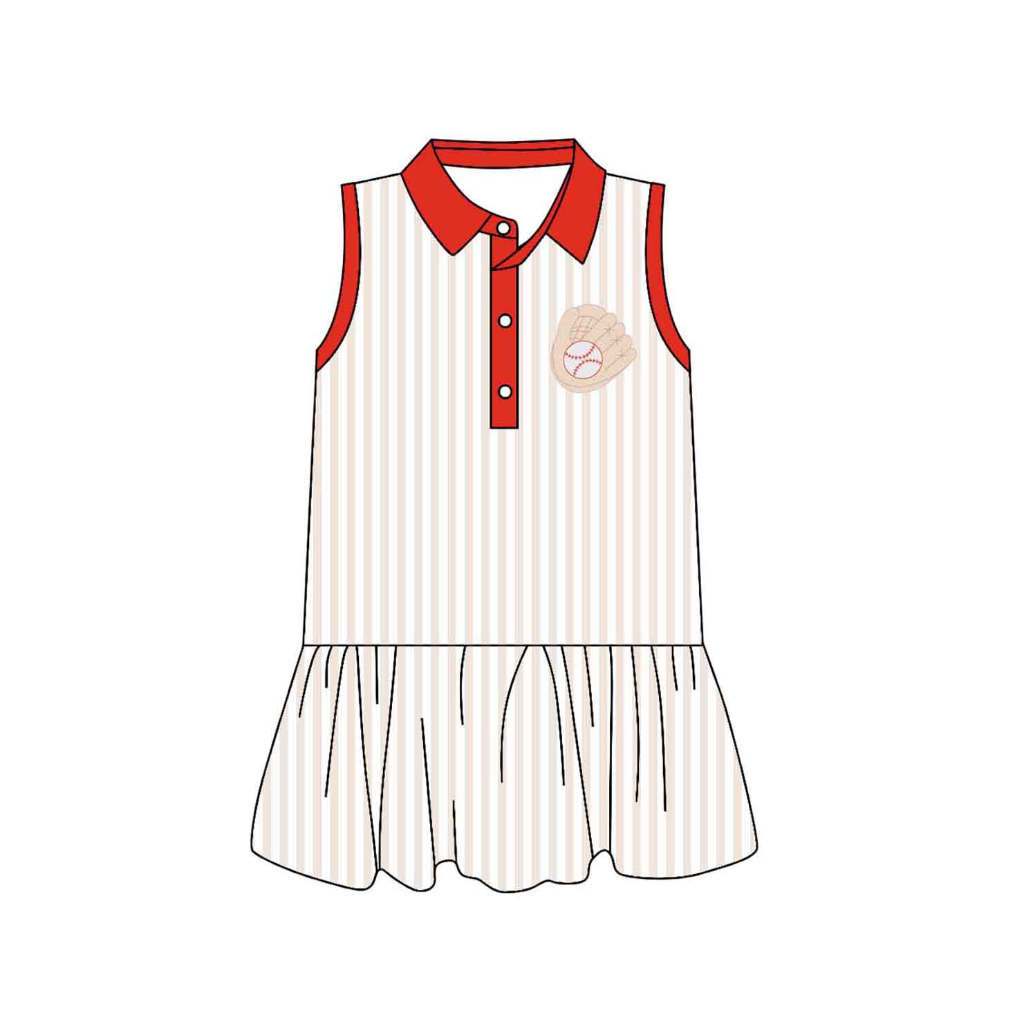 ( Moq 5 ) Preorder Baby Girls Short Sleeves Baseball Stripes Buttons Knee Length Dress