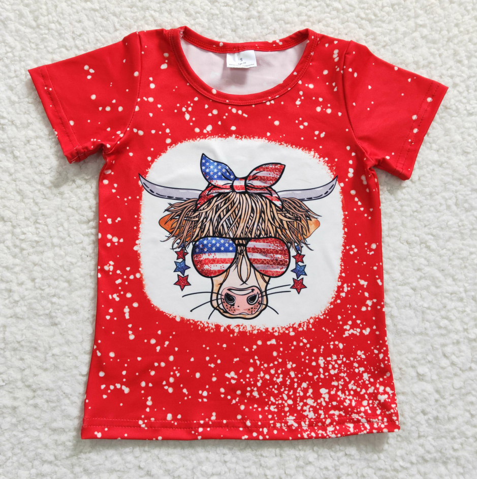 GT0114 July 4th Western Cow Baby Girl Short Sleeves Red Shirt