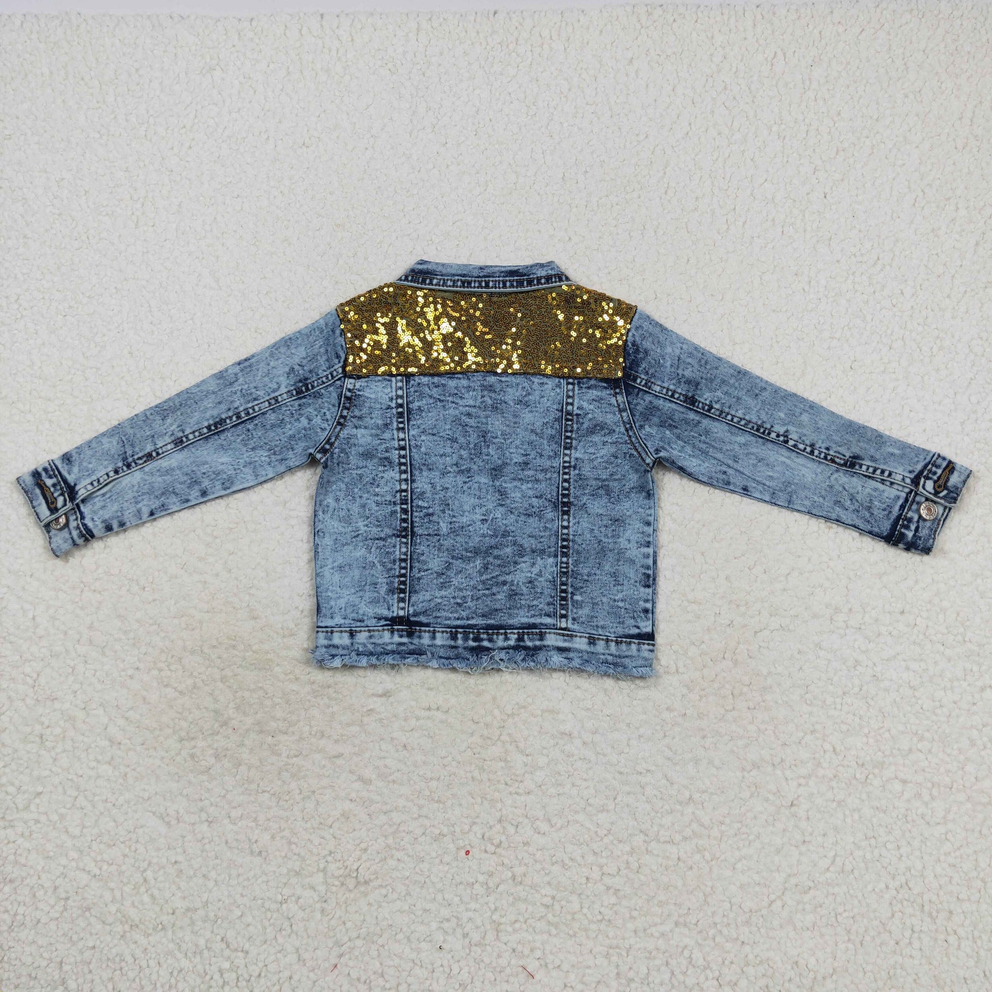 GT0351 Baby Girl Long Sleeves Pocket Denim Jacket Sequins Coat