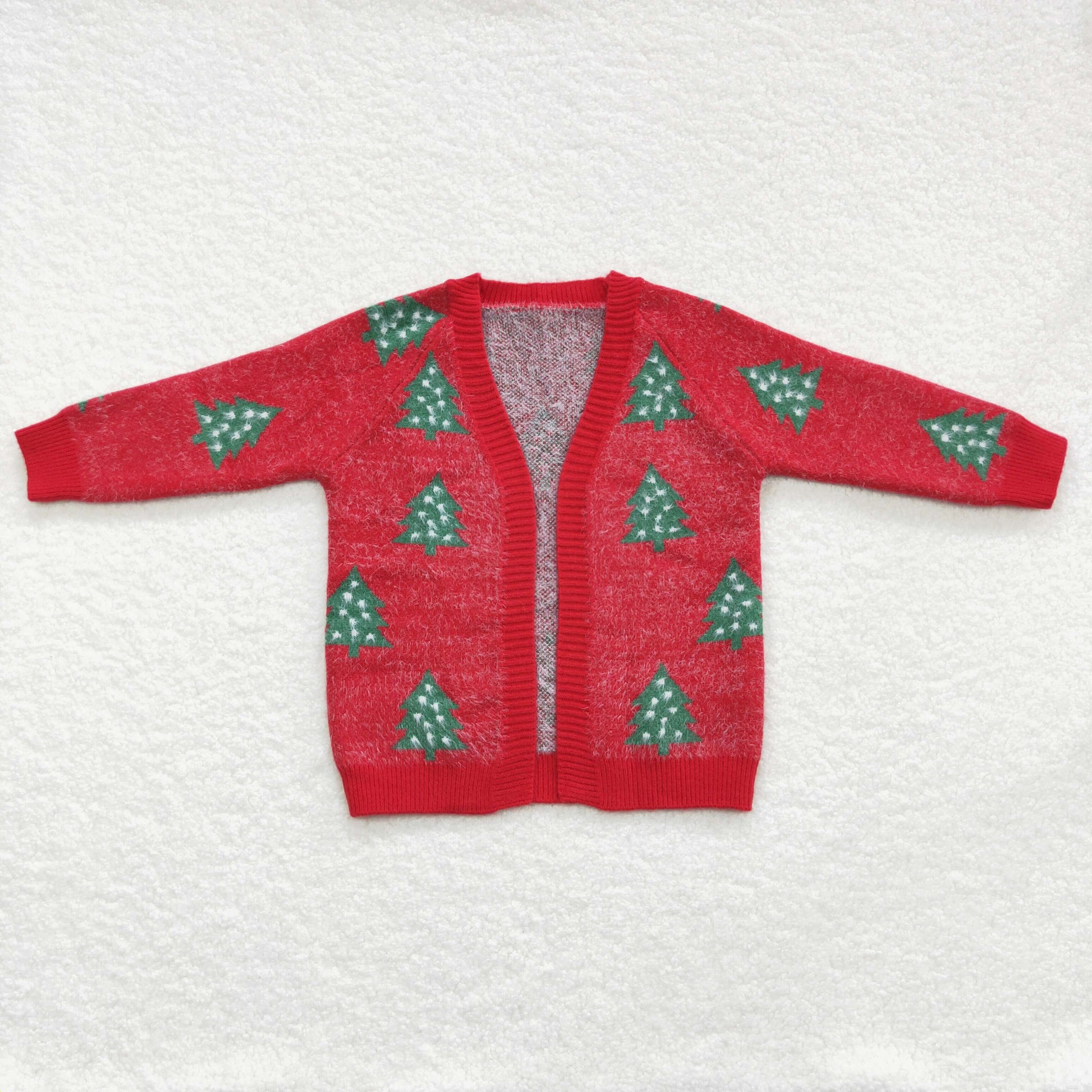 GT0356 Baby Girl Kids Christmas Tree Sweater Red Long Coat