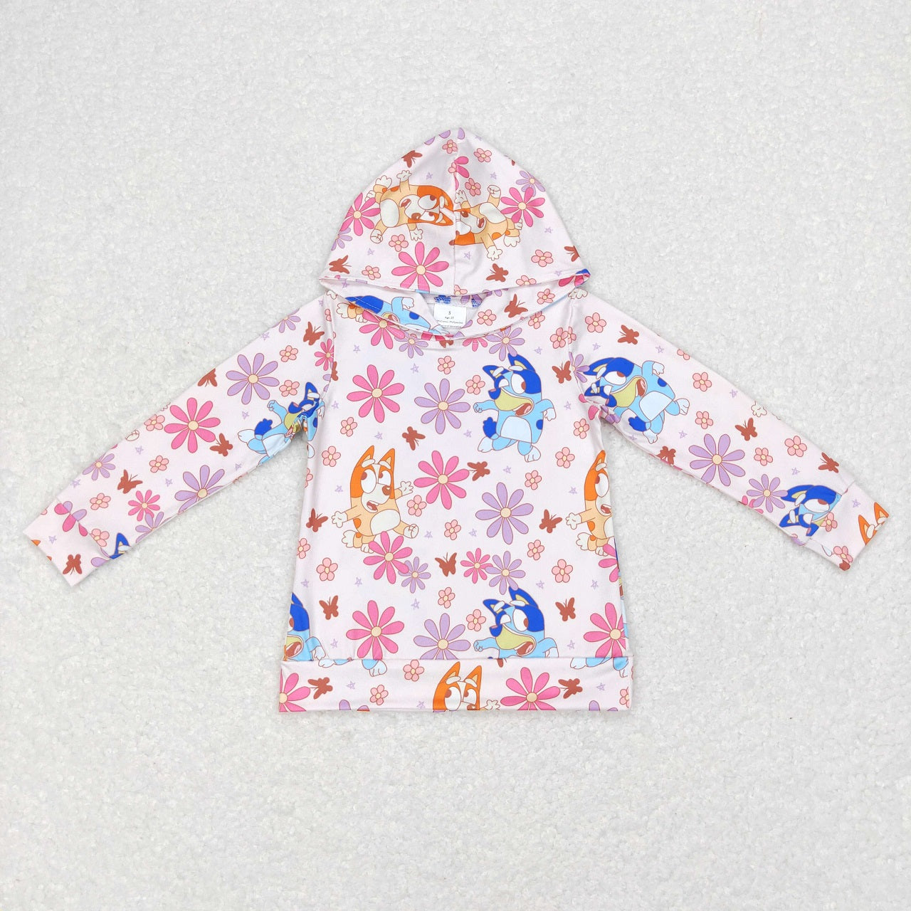 GT0395 Baby Girl Long Sleeves Hoodie Dogs Floral Pullover Tops
