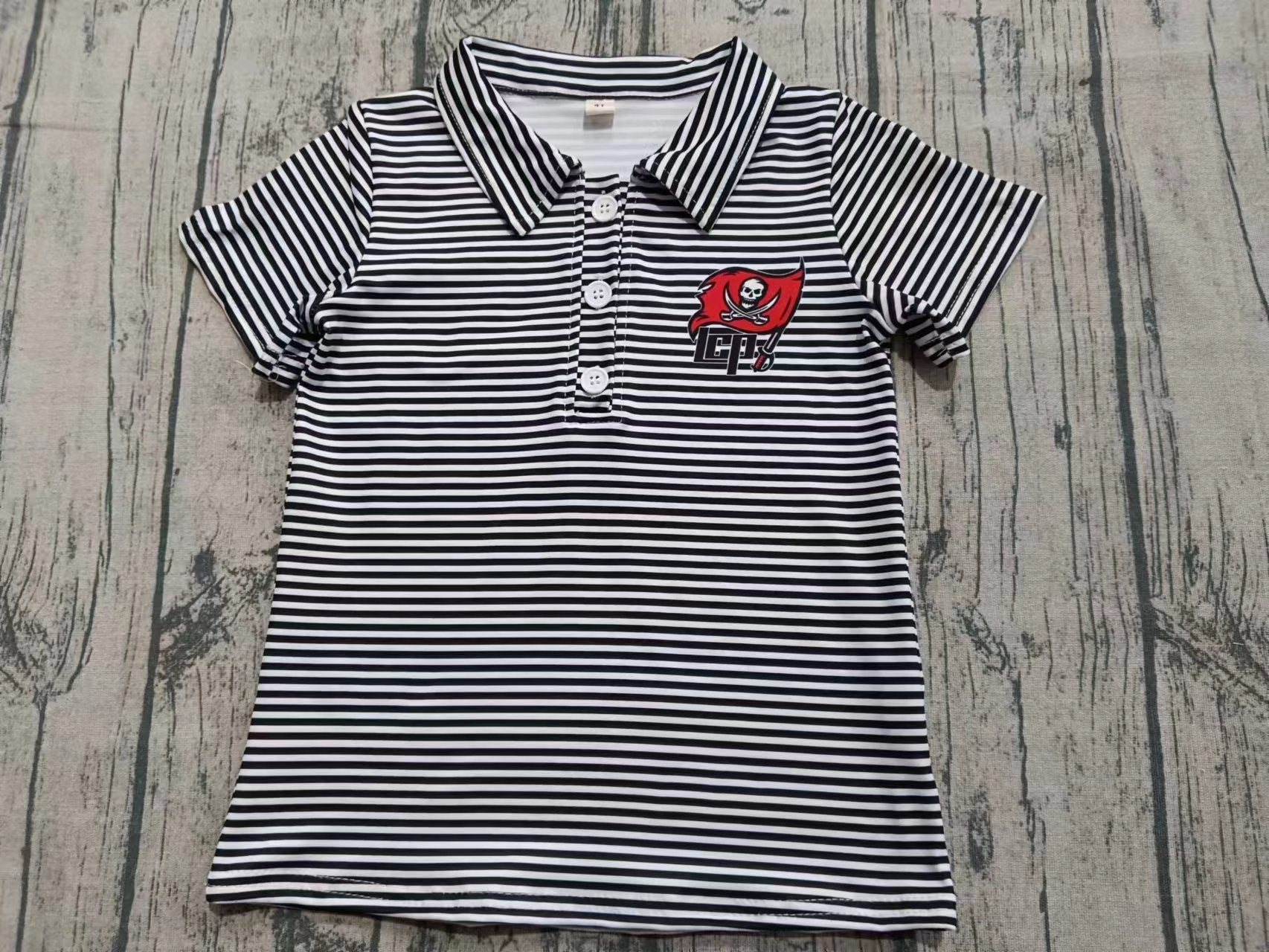 (Moq 5 ) Boys Kids Short Sleeves Black Stripes Team Buttons Shirt
