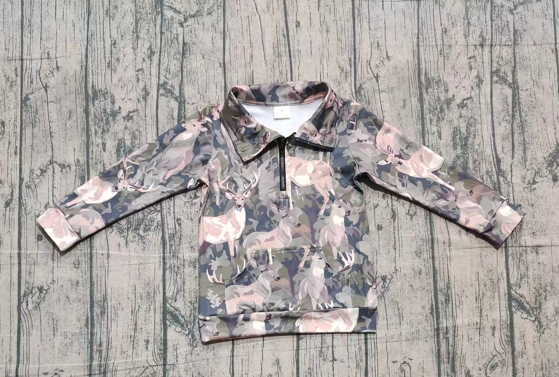 Kids Girls Long Sleeves Deer Zipper Pocket Yoga Pullover Shirt RTS