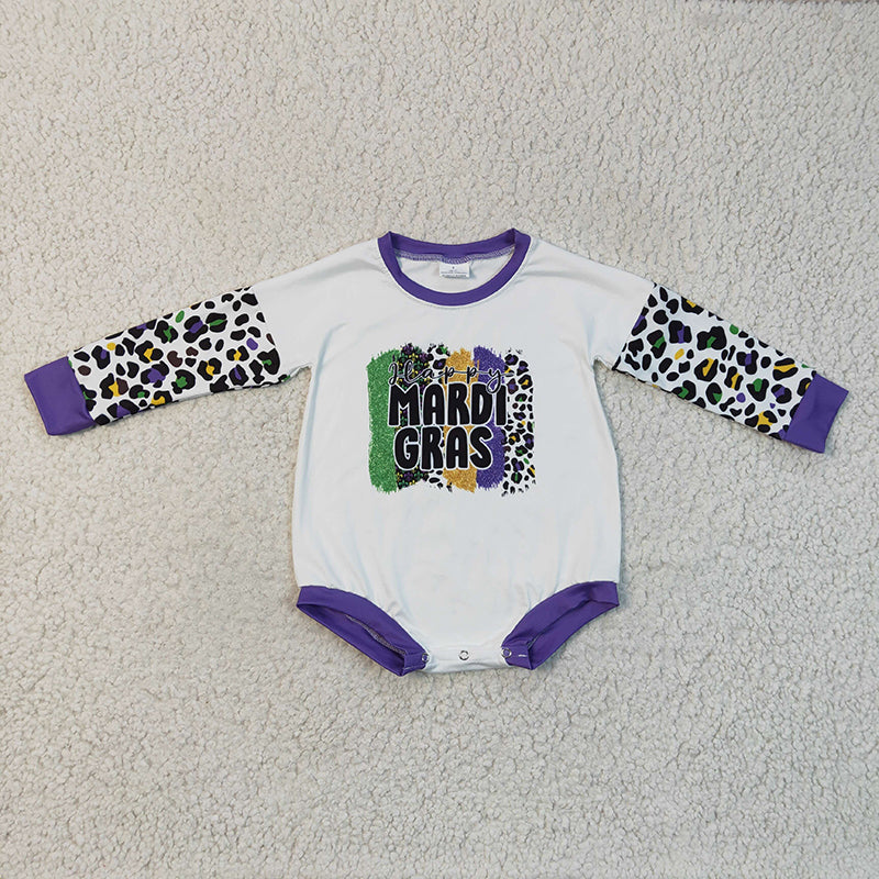 LR0226 Baby Girl Kids Leopard long sleeves Mardi Gras romper
