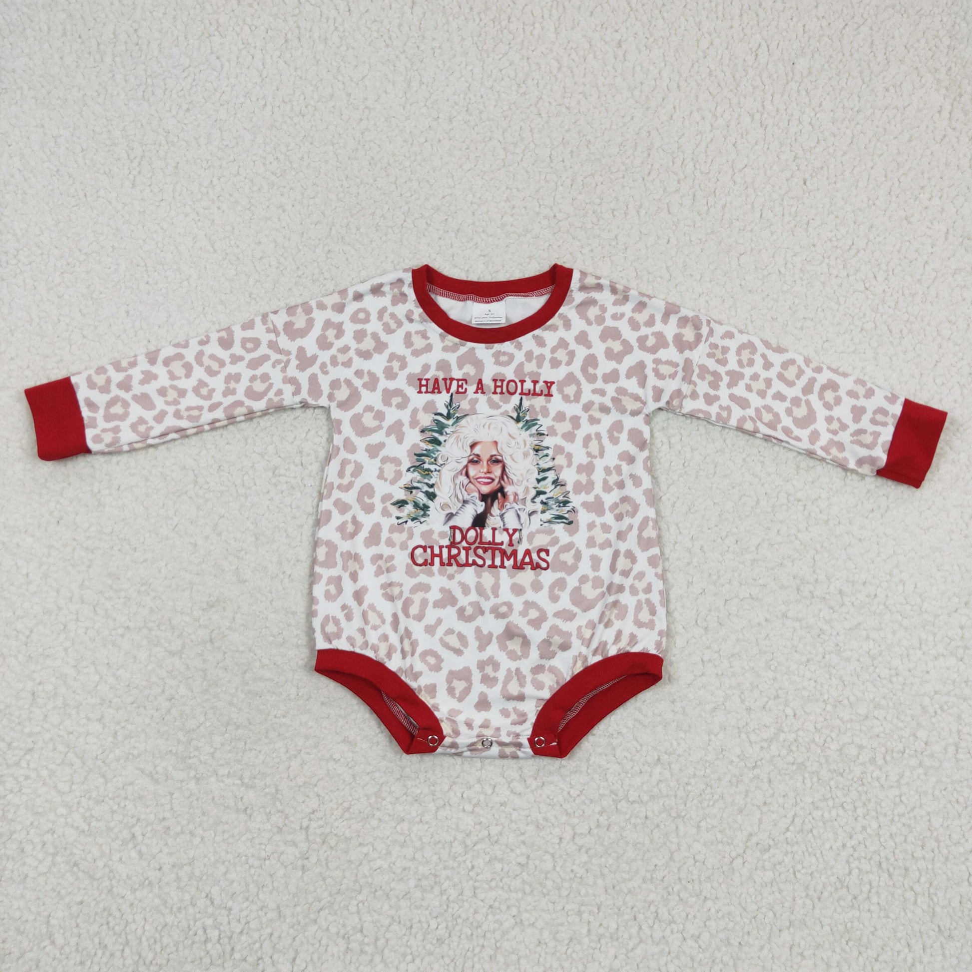 LR0283 Baby Kids Christmas Leopard Long Sleeves Romper