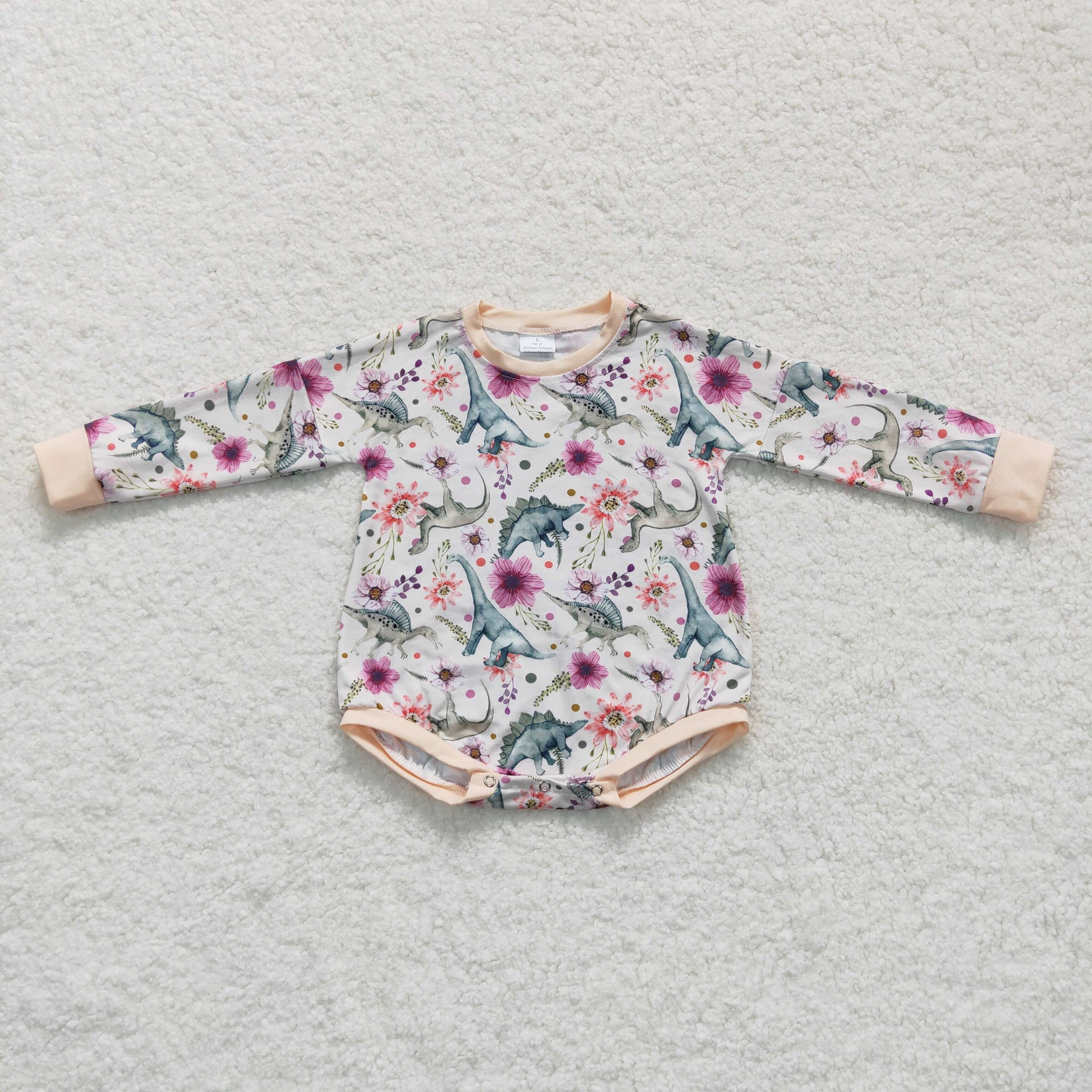 LR0436 Baby Girl Dinosaurs Floral Romper