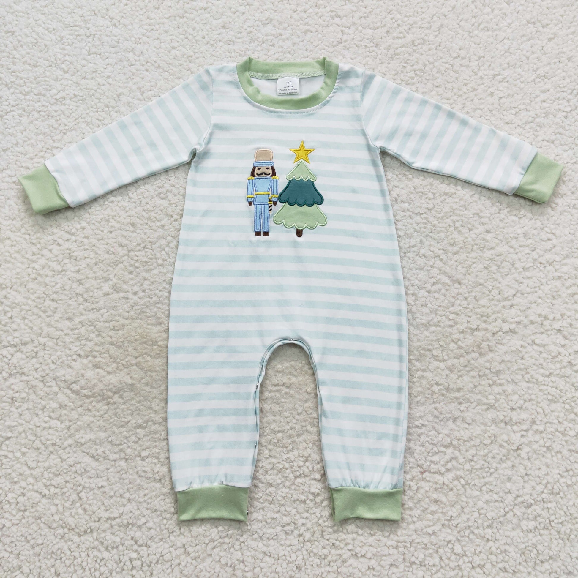 LR0479 Baby Boy Christmas Embroidery Soldier Tree Stripes One Piece Romper