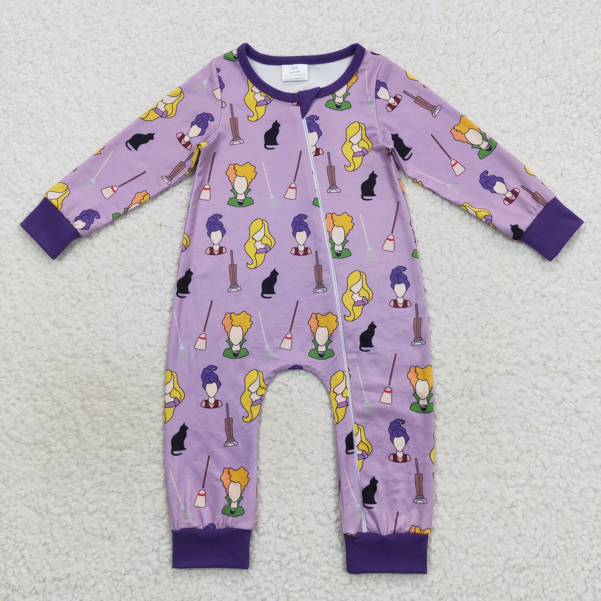 LR0514 Baby Girl Purple Long Sleeves Halloween One Piece Zipper Romper