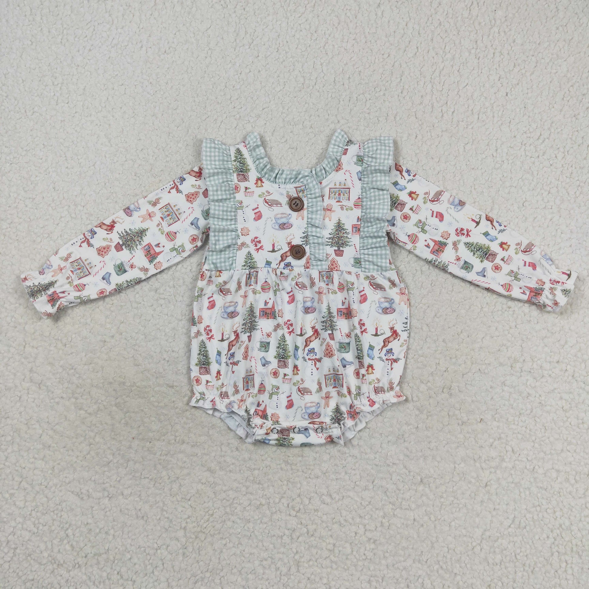 LR0556 Baby Girl Christmas Long Sleeves One Piece Reindeer Gingerbread Romper