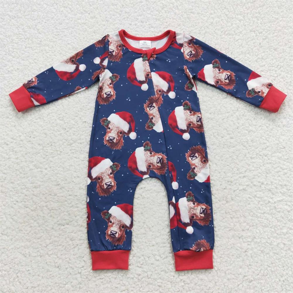 LR0597 Baby Kids Christmas Long Sleeves Western Cow Zipper One Piece Romper