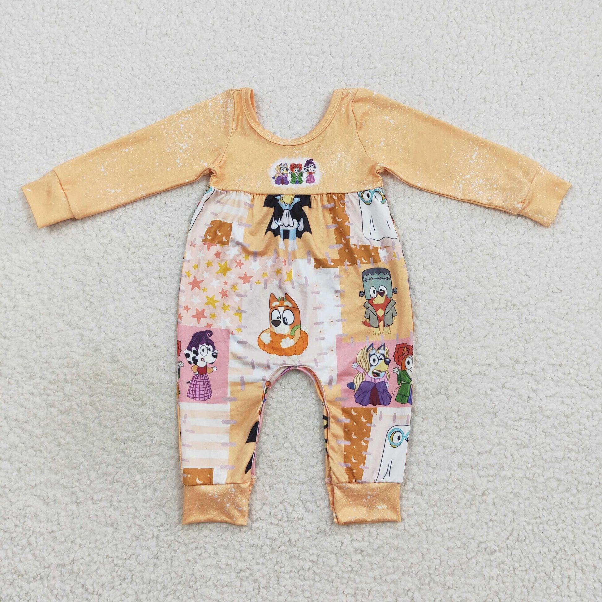LR0637 Baby Girl Long Sleeves Halloween Dogs One Piece Romper