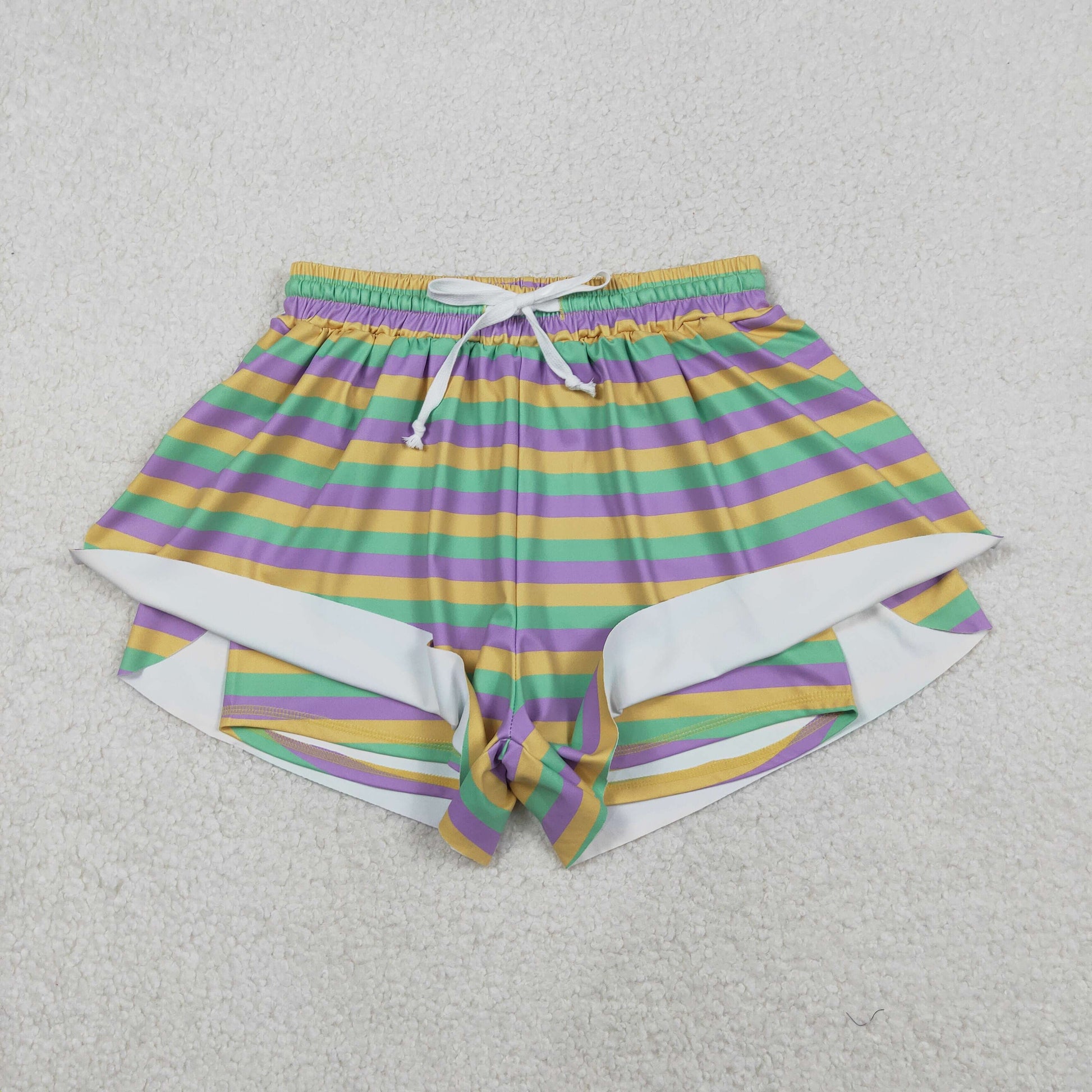Sibling Baby Girls Adult Women Mardi Gras Yoga Active Shorts Mommy and Me Bottoms RTS