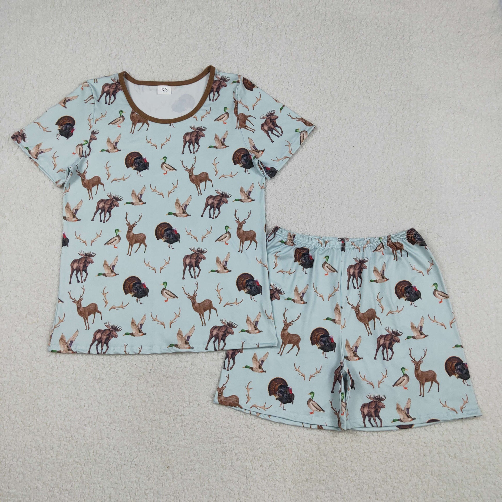 Sibling Baby Girls Adult Women Deer Ducks turkey Shirt Shorts Mommy and Me Hunting Pajamas Sets RTS