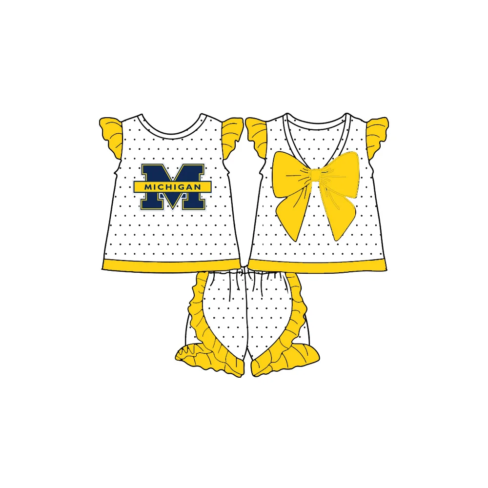 Moq 5 Baby Girl Short Sleeves Yellow Big Bow Tops Shorts Team Set