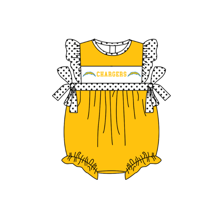 ( Moq 5 ) Baby Girls Kids Short Sleeves Bows Team Yellow Bubble Romper