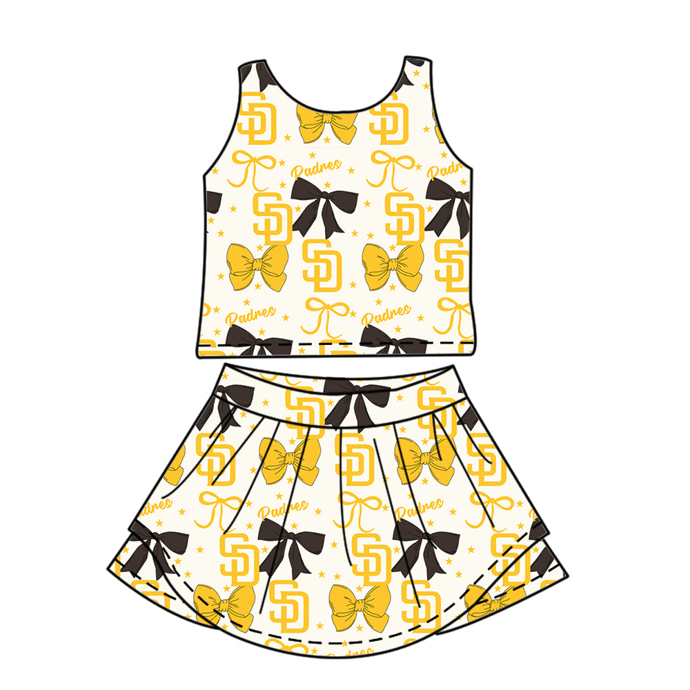 ( Moq 5 each style ) Baby Boy Girl Toddler Team Bows Yellow Sibling Dress Set 6.17