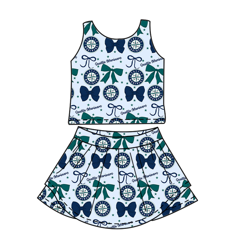 ( Moq 5 each style ) Baby Boy Girl Toddler Team Green Blue Bows Sibling Dress Set 6.17