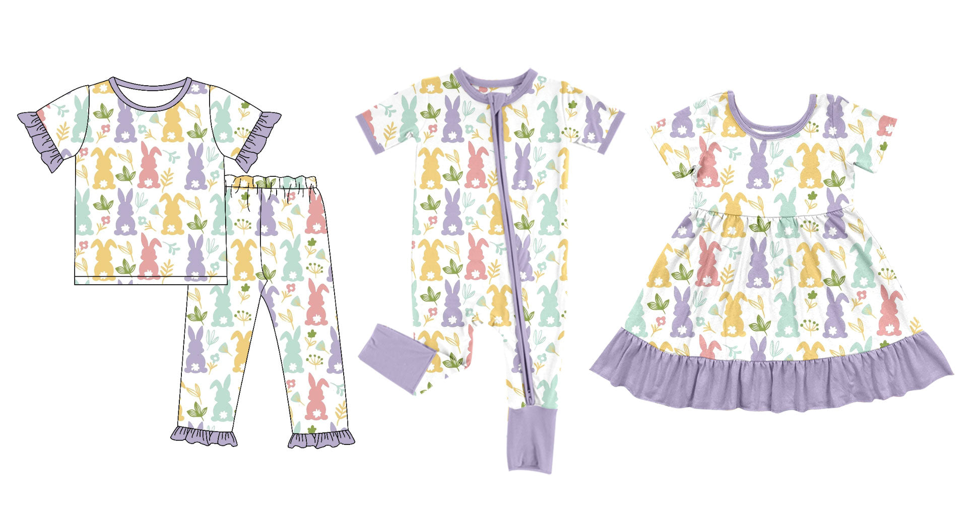 ( Moq 5 Each Style ) Baby Girl Toddler Rabbits Flower Easter Sibling Romper Dress Set