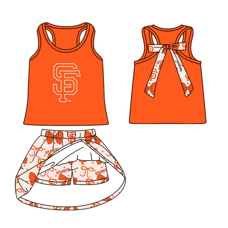 ( Moq 5 each style ) Baby Girl Toddler SF Team Orange Bows Sibling Jumpsuit Set 6.16