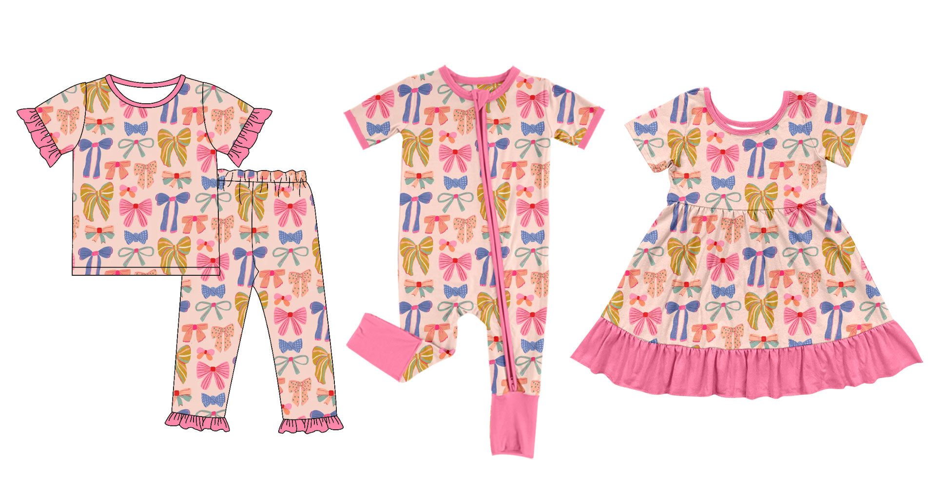 ( Moq 5 Each Style ) Baby Girl Toddler Short Sleeves Bows Sibling Romper Dress Set