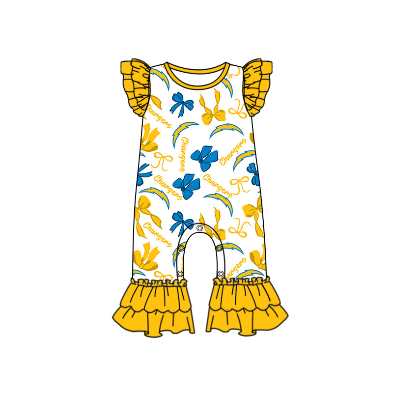 ( Moq 5 each style ) Baby Girl Toddler Team Orange Blue Bows Sibling Romper Dress Set 7.10