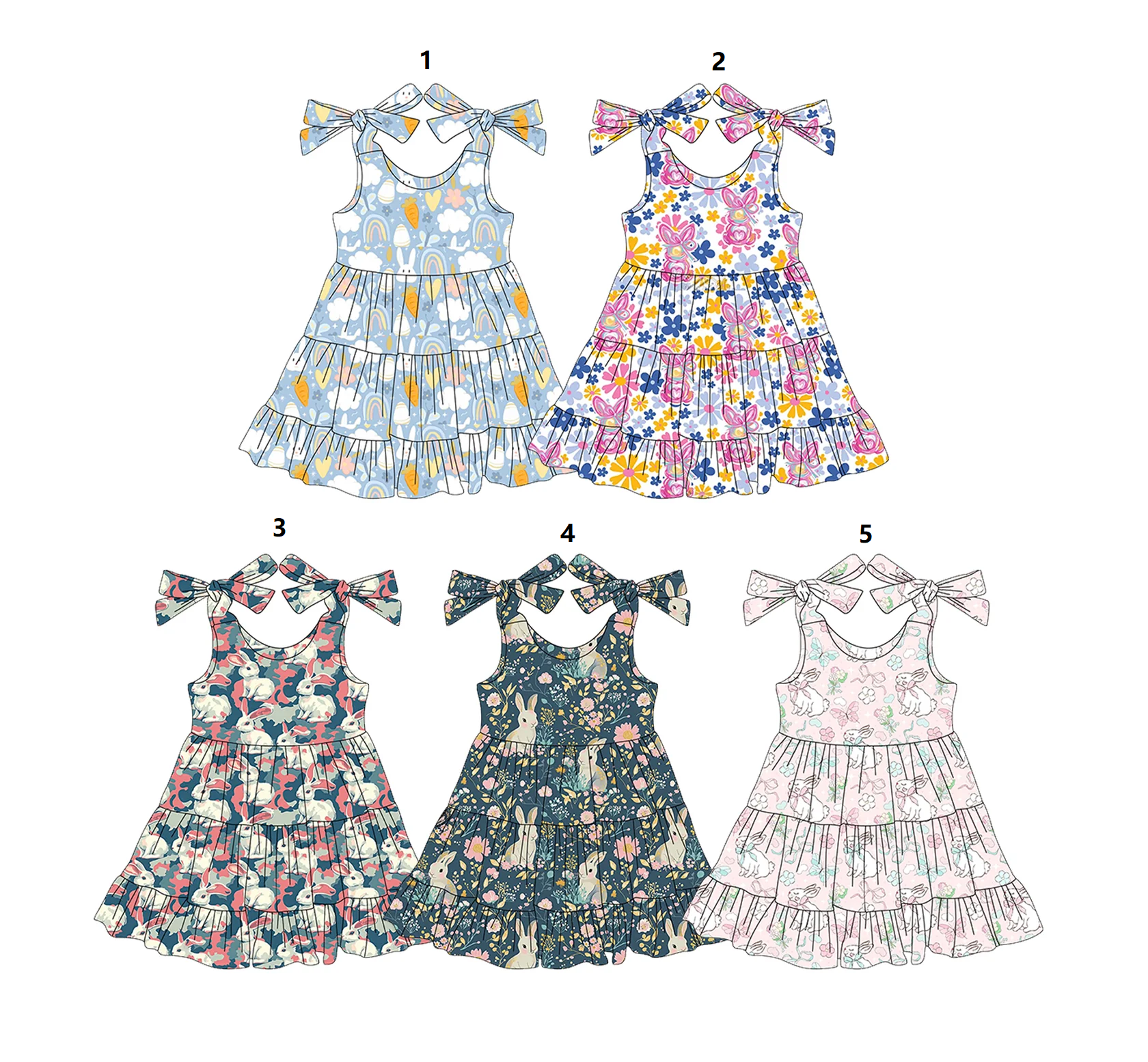 ( Moq 5 Each Style ) Baby Girls Kids Bows Sleeves Rabbits Sibling Easter Knee Length Dresses