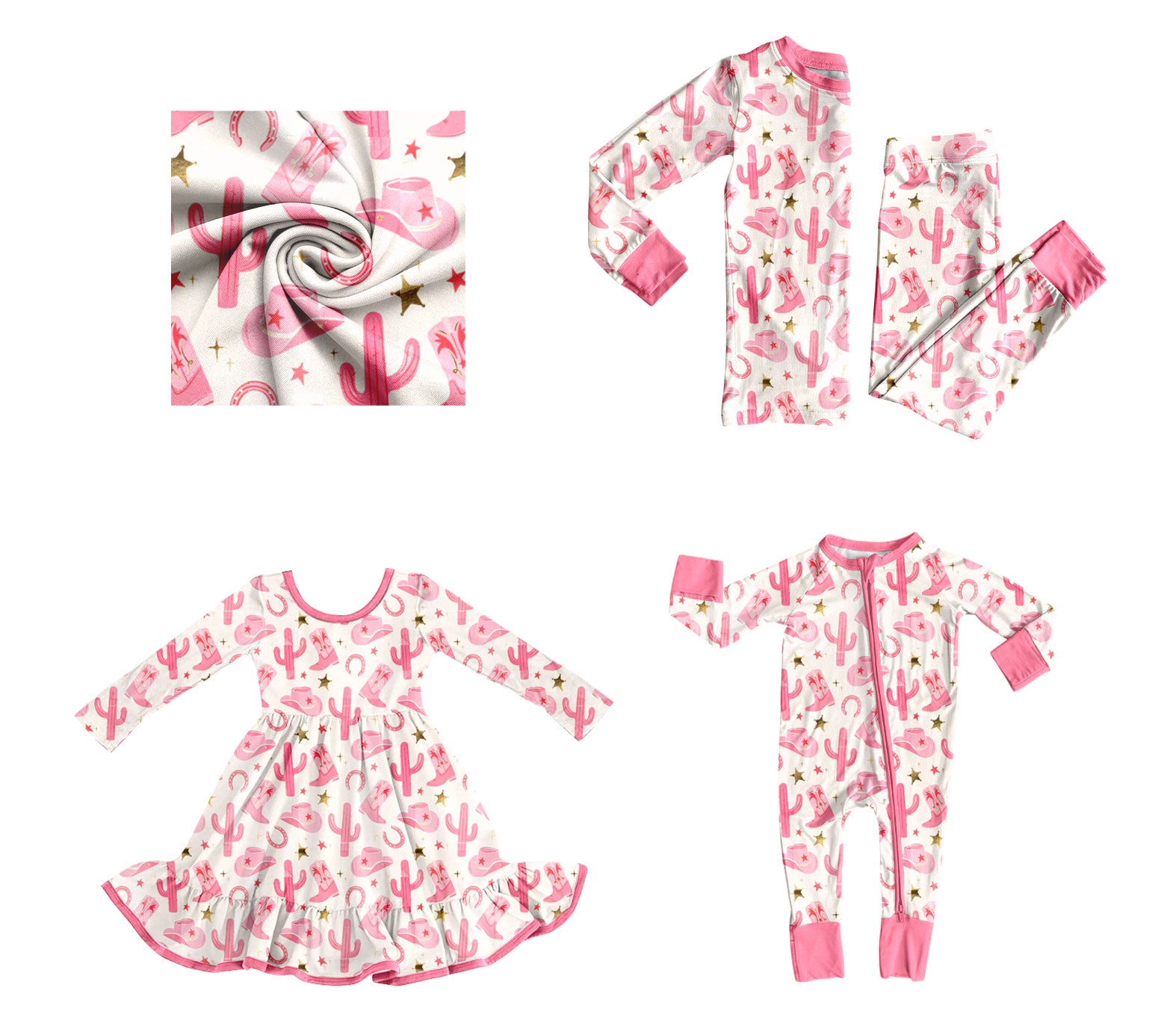 ( Moq 5 Each Style ) Baby Kids Toddler Western Boots Cactus Sibling Romper Dress Set