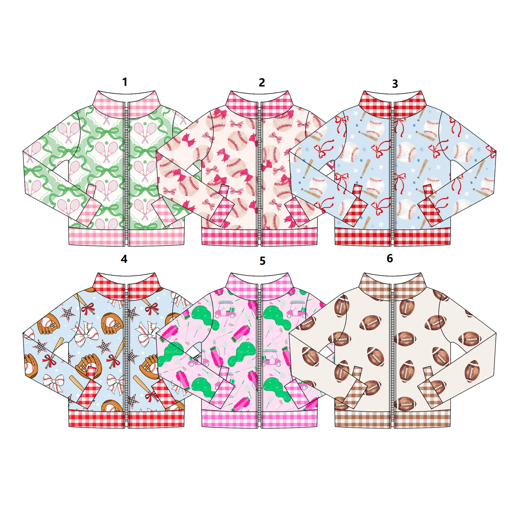 ( Moq 5 Each Style ) Sibling Baby Girls Kids Long Sleeves Ball Game Zipper Pockets Jackets Tops