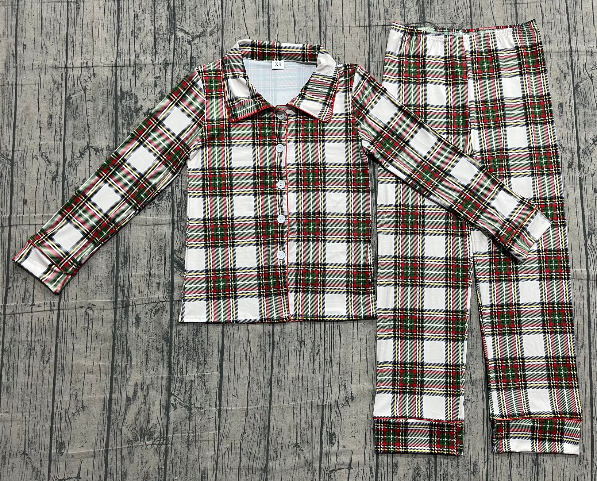 ( No moq ) Preorder Adult Man Christmas Plaid Buttons Shirt Pants Pajamas Clothes Set